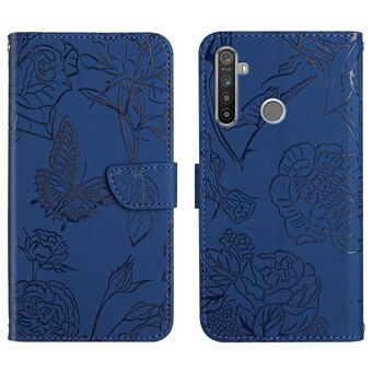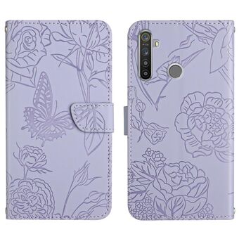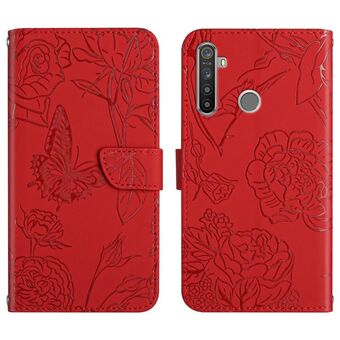 Θήκη τηλεφώνου από δέρμα με ανάγλυφο σχέδιο πεταλούδας και παιωνίας για OPPO Realme 5 (Κόκκινο)