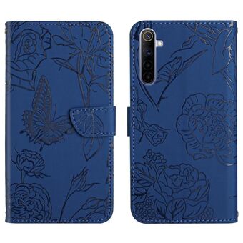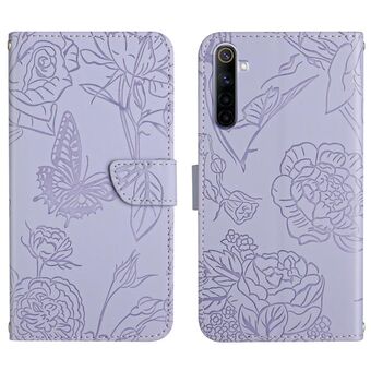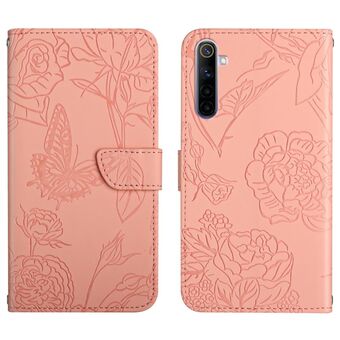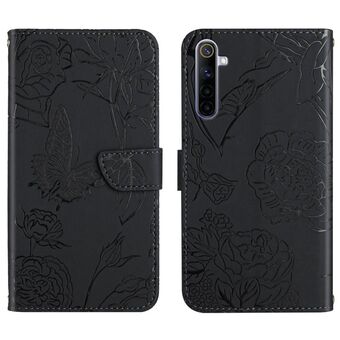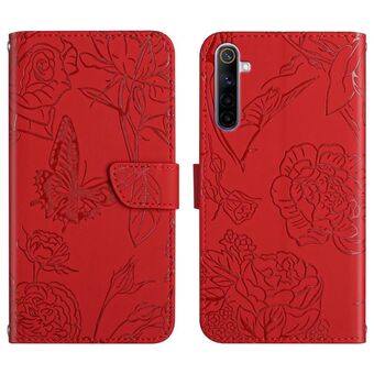 Θήκη τηλεφώνου από δέρμα με ανάγλυφο σχέδιο πεταλούδας και παιωνίας για OPPO Realme 6 Pro (Κόκκινο)