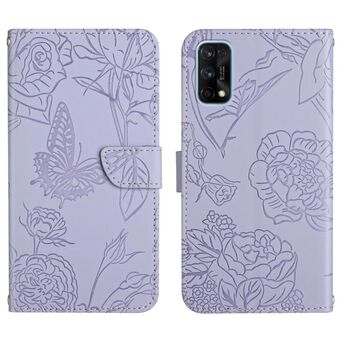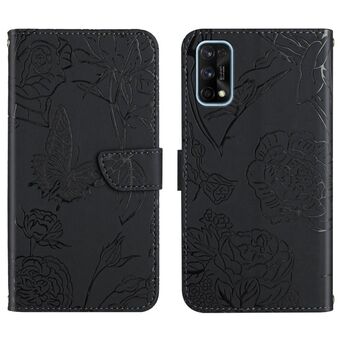 Θήκη τηλεφώνου από δέρμα με ανάγλυφο σχέδιο πεταλούδας και παιωνίας για OPPO Realme 7 Pro (Κόκκινο)