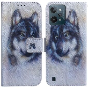 Θήκη τηλεφώνου από δέρμα με σχέδιο για OPPO Realme C31 (Λευκός Λύκος)