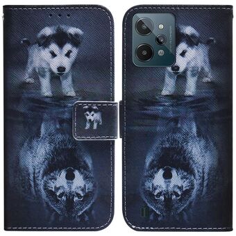 Θήκη τηλεφώνου από δέρμα με έγχρωμο σχέδιο για OPPO Realme C31 (Λύκος και Σκύλος)