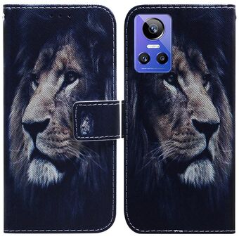 Θήκη τηλεφώνου από δέρμα με έγχρωμη ζωγραφική για OPPO Realme GT Neo3 (Λιοντάρι)