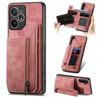 Θήκη κινητού Realme Neo7 Retro με δερμάτινο πορτοφόλι και φερμουάρ (Ροζ)