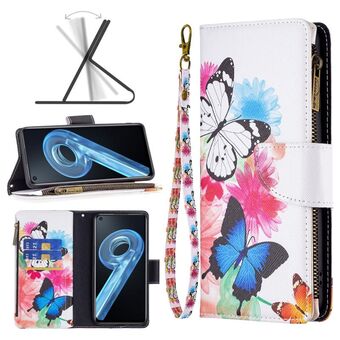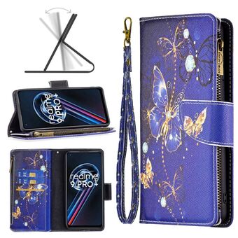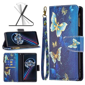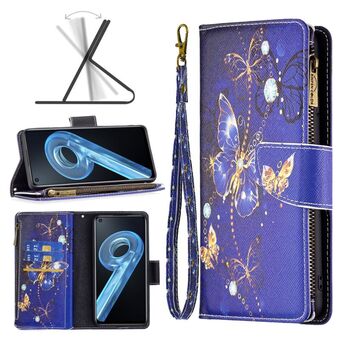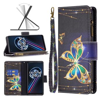 Θήκη τηλεφώνου από δέρμα με φερμουάρ και πολύχρωμο σχέδιο για OPPO Realme 9 Pro+ (Μεγάλη Πεταλούδα)