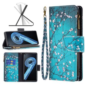 Θήκη τηλεφώνου από δέρμα με φερμουάρ και πολύχρωμο σχέδιο για OPPO A36 4G / A96 4G / A76 4G / K10 4G / Realme 9i (Λουλούδι Δαμασκηνιάς)