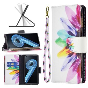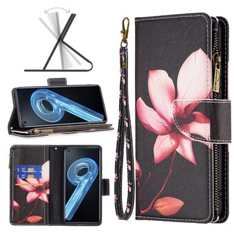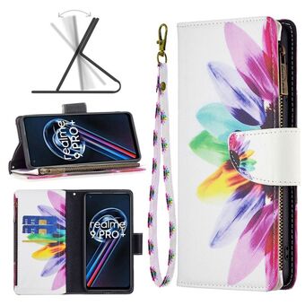 Θήκη τηλεφώνου από δέρμα με φερμουάρ και πολύχρωμο σχέδιο για OPPO Realme 9 Pro+ (Λωτός)