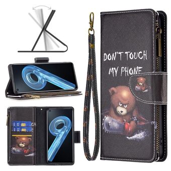 Θήκη τηλεφώνου από δέρμα με φερμουάρ και πολύχρωμο σχέδιο για OPPO Realme 9 Pro+ (Αρκούδα)