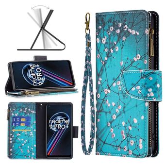 Θήκη τηλεφώνου από δέρμα με φερμουάρ και πολύχρωμο σχέδιο για OPPO Realme 9 Pro+ (Λουλούδι Δαμασκηνιάς)