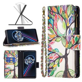 Θήκη τηλεφώνου από δέρμα με φερμουάρ και πολύχρωμο σχέδιο για OPPO Realme 9 Pro+ (Μεγάλο Δέντρο)