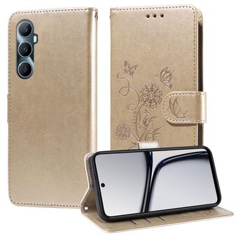 For Realme C65 4G Global Embossed Butterfly Flowers Leather Phone Case(Gold)