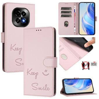 Για Realme 13 + 5G Παγκόσμια χαμόγελο ανάγλυφο RFID δερμάτινη θήκη τηλεφώνου (Light Purple)