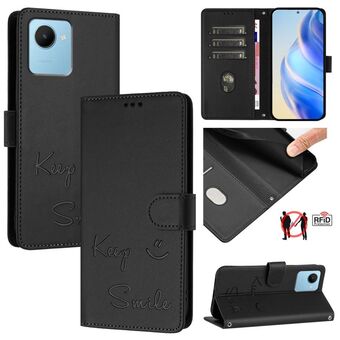 Για Realme C21Y Smile ανάγλυφο RFID δερμάτινη θήκη τηλεφώνου (Μαύρο)
