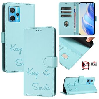 Θήκη τηλεφώνου από δέρμα με ανάγλυφο χαμόγελο RFID για Realme 9 Pro 5G Global / 9 5G EU (Μέντας Πράσινο)