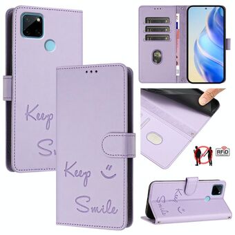 Για Realme C21Y Χαμόγελο ανάγλυφο RFID δερμάτινη θήκη τηλεφώνου (Light Purple)