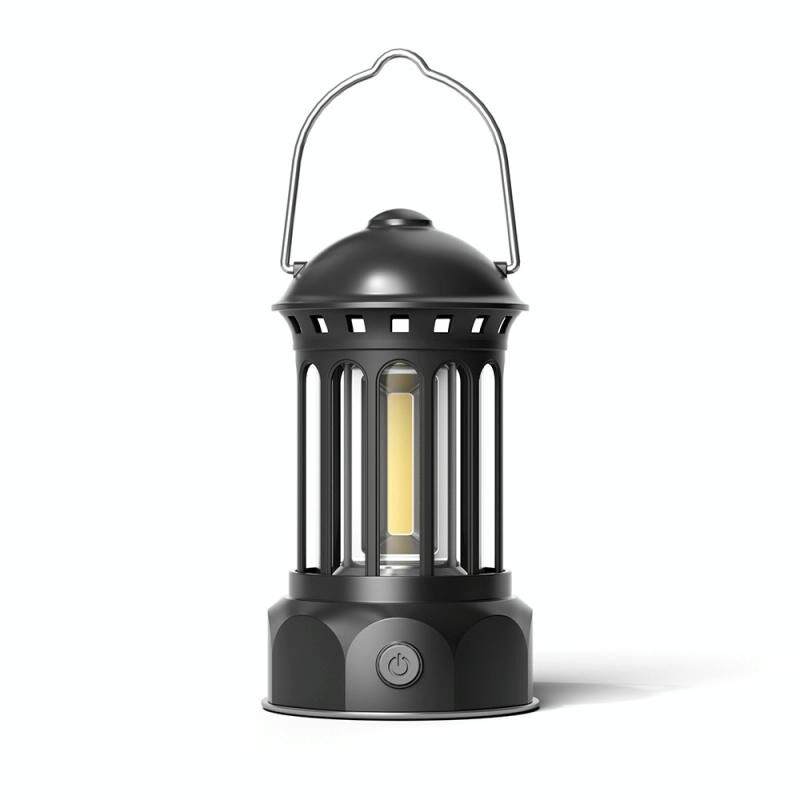 Επαναφορτιζόμενη COB φορητή υπαίθρια λάμπα στρατοπέδευσης Ατμόσφαιρα λαμπτήρας σκηνής ρετρό λάμπα, μέγεθος: Μέγεθος: Μικρό Μαύρο