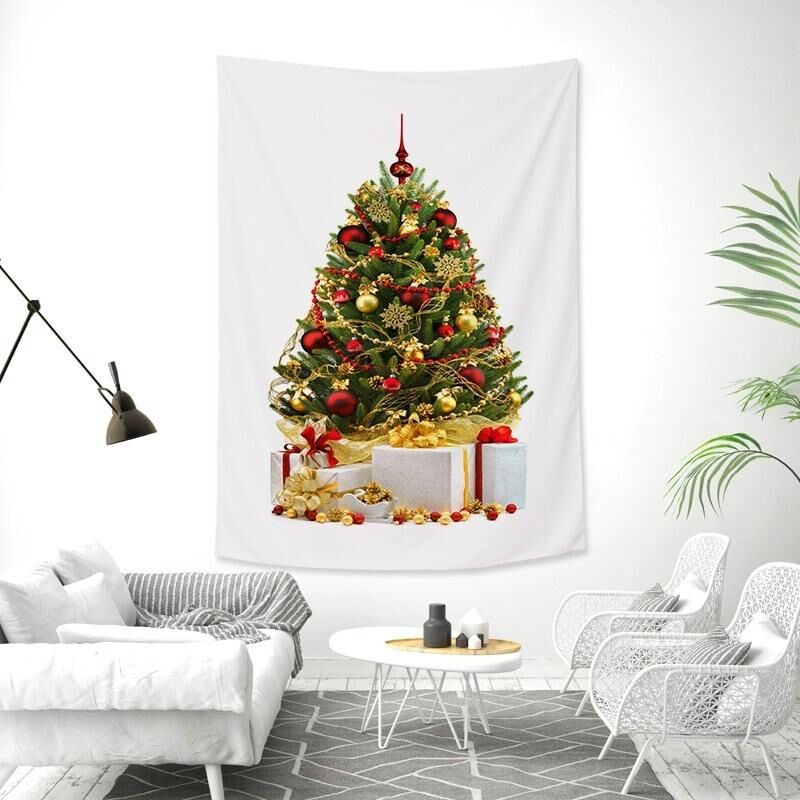 Ορθογώνιο χριστουγεννιάτικο δέντρο ροδάκινο δέρμα ταπισερί τοιχογραφία Χριστουγεννιάτικη διακόσμηση ταπισερί, μέγεθος: 145x215cm (11)