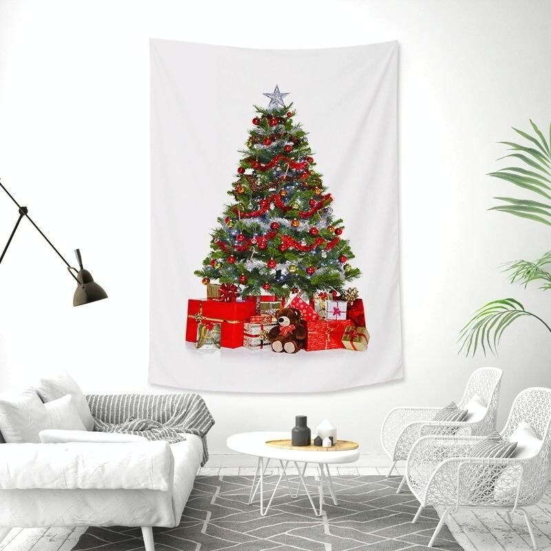 Ορθογώνιο χριστουγεννιάτικο δέντρο ροδάκινο δέρμα ταπισερί τοιχογραφία Χριστουγεννιάτικη διακόσμηση ταπισερί, μέγεθος: 145x215cm (12)