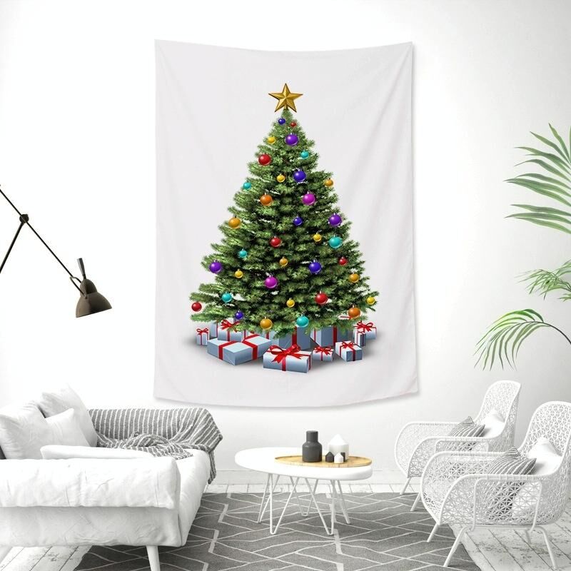 Ορθογώνιο χριστουγεννιάτικο δέντρο ροδάκινο δέρμα ταπισερί τοιχογραφία Χριστουγεννιάτικη διακόσμηση ταπισερί, μέγεθος: 145x215cm (2)