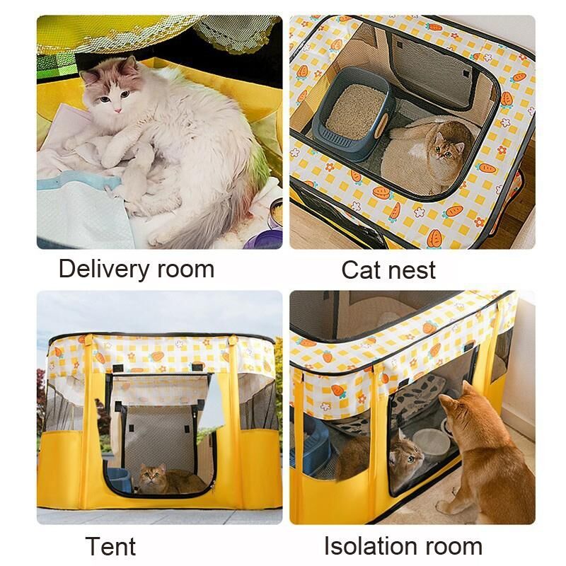 10. Because the cat delivery room is a foldable style, the frame material used is steel wire. After the cat delivery room is opened, there will be a situation that is not three-dimensional, similar to the uneven situation, which is a process phenomenon. will sag. Just open the cat delivery room, lay it flat, add something a little heavier on it, press it for a day, and it can be restored.