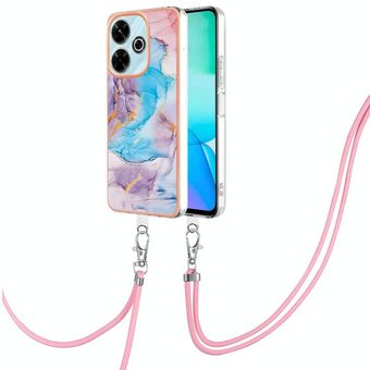 For Redmi 13 4G Electroplating Pattern IMD TPU Shockproof Case with Neck Lanyard(Milky Way White Marble)