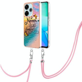 For Redmi 13 4G Electroplating Pattern IMD TPU Shockproof Case with Neck Lanyard(Dream Chasing Butterfly)