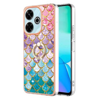 For Redmi 13 4G Electroplating Pattern IMD TPU Shockproof Case with Rhinestone Ring Holder(Colorful Scales)