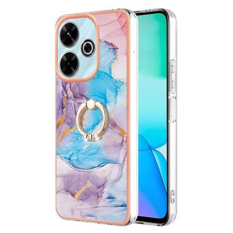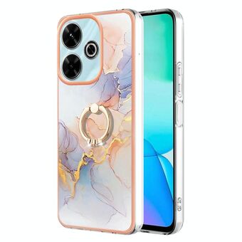 For Redmi 13 4G Electroplating Pattern IMD TPU Shockproof Case with Rhinestone Ring Holder(Milky Way White Marble)