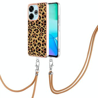 For Redmi 13 4G Electroplating Dual-side IMD Phone Case with Lanyard(Leopard Print)