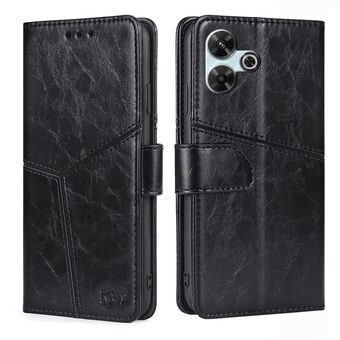 Για Redmi 13 4G γεωμετρική ραφή δερμάτινη θήκη τηλεφώνου (μαύρο)