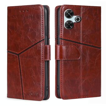 Για Redmi 13 4G γεωμετρική ραφή δερμάτινη θήκη τηλεφώνου (σκούρο καφέ)