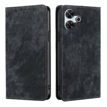 Για Redmi 13 4G RFID Anti-theft βούρτσα μαγνητική δερμάτινη θήκη τηλεφώνου (Μαύρο)