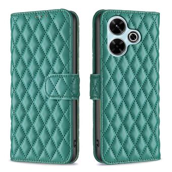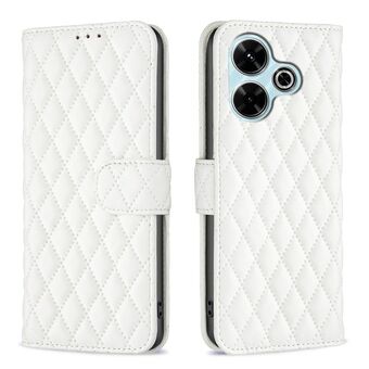 Θήκη τηλεφώνου τύπου πορτοφολιού με δερμάτινη επένδυση και σχέδιο διαμαντένιου πλέγματος για Xiaomi Poco M6 4G / Redmi 13 4G (Λευκό)
