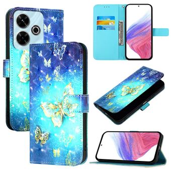 Θήκη τηλεφώνου δερμάτινη με οριζόντιο άνοιγμα και τρισδιάστατη ζωγραφική για Xiaomi Redmi 13 4G (Ροζ Πεταλούδα)