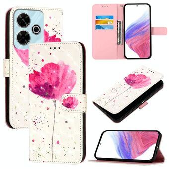 Θήκη τηλεφώνου δερμάτινη με οριζόντιο άνοιγμα και τρισδιάστατη ζωγραφική για Xiaomi Redmi 13 4G (Λουλούδι)
