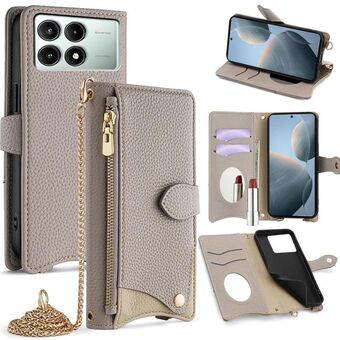Για Redmi K70E / Xiaomi Poco X6 Pro Crossbody αλυσίδα Fishtail Litchi δερμάτινη θήκη τηλεφώνου (γκρι)