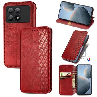Για Xiaomi Redmi K70E Cubic Grid Pressed μαγνητική δερμάτινη θήκη τηλεφώνου (κόκκινο)