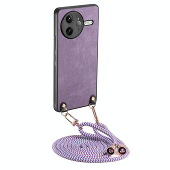 For Redmi K80 / Poco F7 Pro Vintage Leather PC Back Cover Phone Case with Crossbody Strap(Purple)
