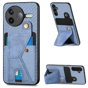For Redmi K80 / Poco F7 Pro Carbon Fiber Wallet Flip Card K-shaped Holder Phone Case(Blue)