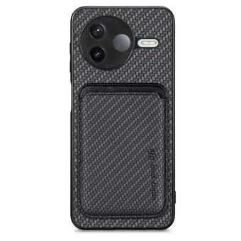 For Redmi K80 / Poco F7 Pro Carbon Fiber Magnetic Card Bag Phone Case(Khaki)