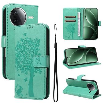 For Redmi K80 / K80 Pro Tree & Cat Embossed Pattern Flip Leather Phone Case(Green)