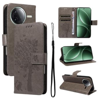 For Redmi K80 / K80 Pro Tree & Cat Embossed Pattern Flip Leather Phone Case(Grey)