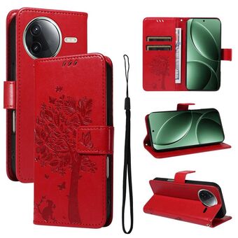 For Redmi K80 / K80 Pro Tree & Cat Embossed Pattern Flip Leather Phone Case(Red)