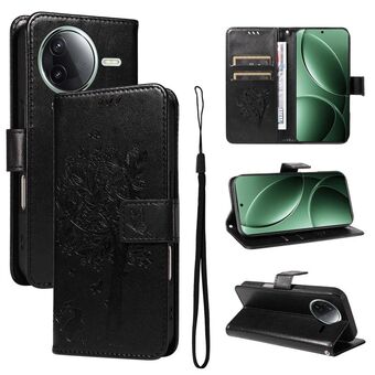 For Redmi K80 / K80 Pro Tree & Cat Embossed Pattern Flip Leather Phone Case(Black)