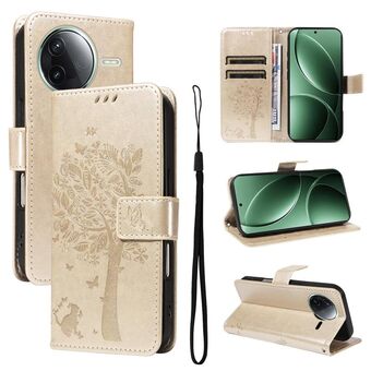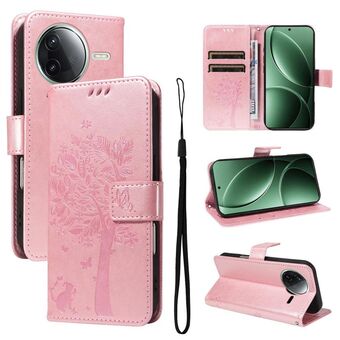 For Redmi K80 / K80 Pro Tree & Cat Embossed Pattern Flip Leather Phone Case(Gold)