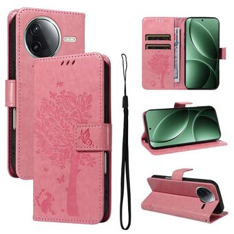 For Redmi K80 / K80 Pro Tree & Cat Embossed Pattern Flip Leather Phone Case(Pink)