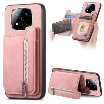 For Redmi Note 14 Pro+ 5G Retro MagSafe Zipper Wallet Card Bag Back Phone Case(Pink)