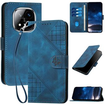 For Redmi Note 14 Pro+ 5G YX0080 Grid Butterfly Embossed Pattern Leather Phone Case with Lanyard(Dark Blue)