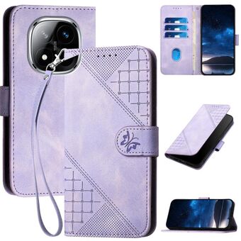 For Redmi Note 14 Pro+ 5G YX0080 Grid Butterfly Embossed Pattern Leather Phone Case with Lanyard(Light Purple)