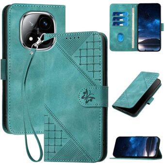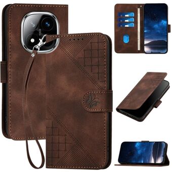 Θήκη τηλεφώνου από δέρμα με ανάγλυφο σχέδιο πλέγματος και πεταλούδας για Redmi Note 14 Pro+ 5G YX0080 με κορδόνι (Καφέ)