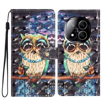 Θήκη τηλεφώνου από δέρμα με τρισδιάστατο σχέδιο για Redmi Note 14 Pro+ 5G (Γεράκι με μεγάλα μάτια)